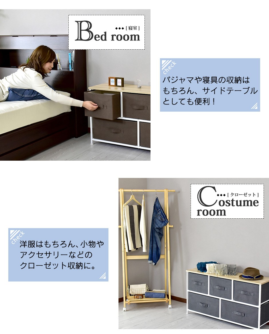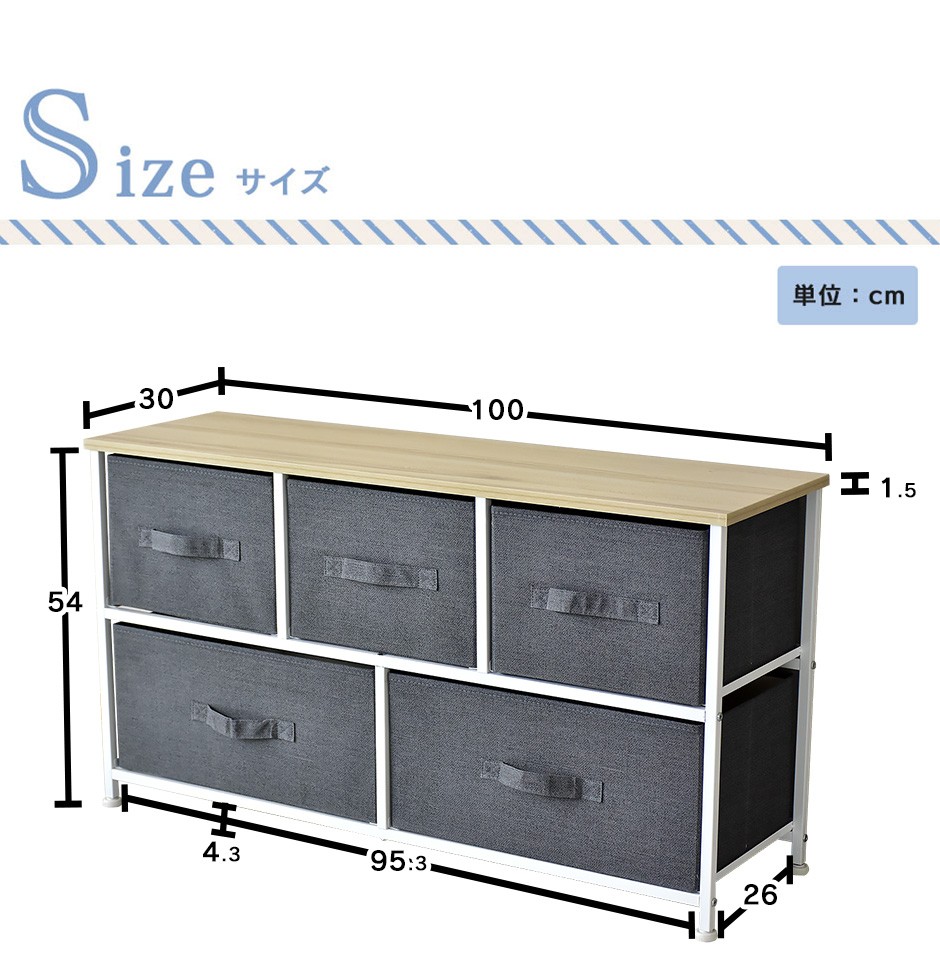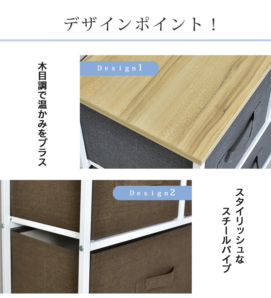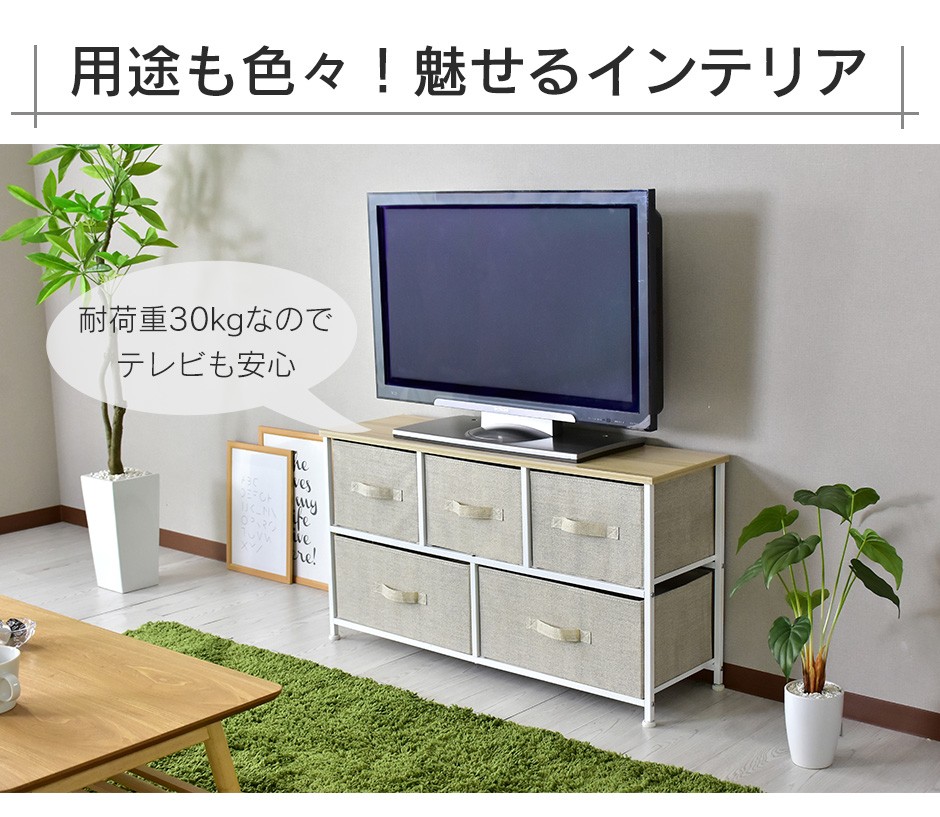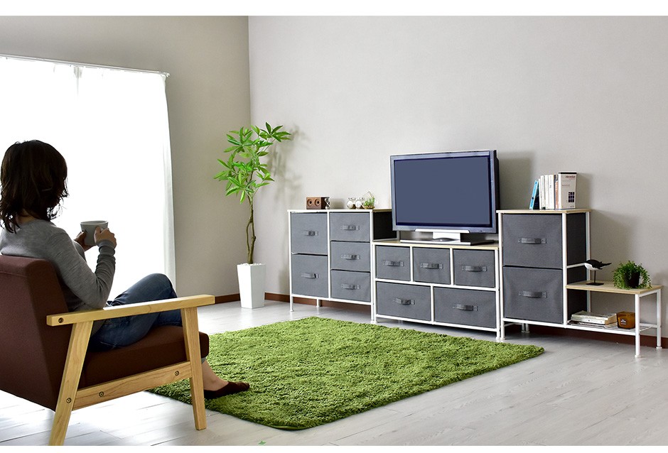 | 布地の収納ボックス5杯付きで、大容量&取り出しやすさ抜群 | リリア(収納)【Lilia】は、布地の収納ボックスが5杯付いた、コンパクトでありながら大容量の収納家具です。幅100cm、奥行30cm、高さ55cmというスリムなデザインで、省スペースながらも収納力は抜群です。この5つの布地引き出しは、それぞれがしっかりとした作りで、日用品や衣類、雑貨などさまざまなものを収納できる点が特長です。また、軽量な引き出し構造になっているため、スムーズに取り出すことができ、使いやすさにも優れています。引き出し自体が布製であるため、使用時の音も静かで、家族の生活空間を邪魔することなく快適に使用できる点も嬉しいポイントです。例えば、リビングや寝室、クローゼットの整理整頓に最適で、靴下や下着、タオルなどの小物を分けて収納することができます。 |