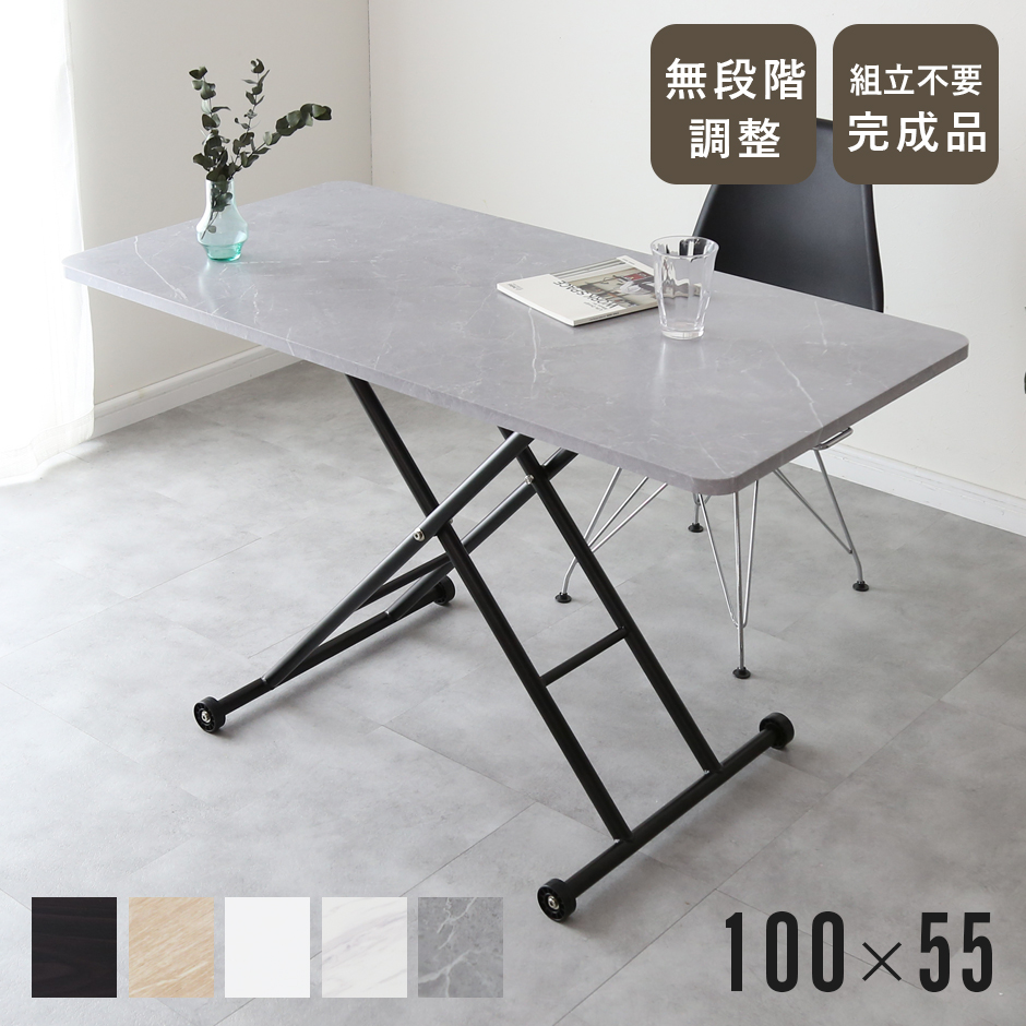 ガス圧昇降式テーブルは、そのコンパクトなサイズが特徴で、使わないときでも場所を取ることなく、スマートに収納できます。収納の手間を最小限に抑え、スペースを有効に活用できるため、お部屋のレイアウトや使い方に合わせて、自由自在に配置できます。