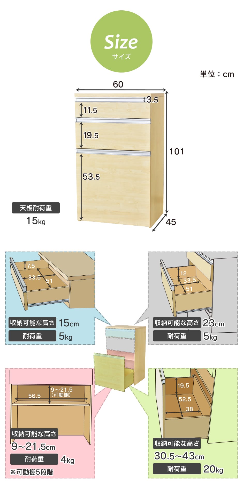 幅60×奥行45×高さ101(cm)