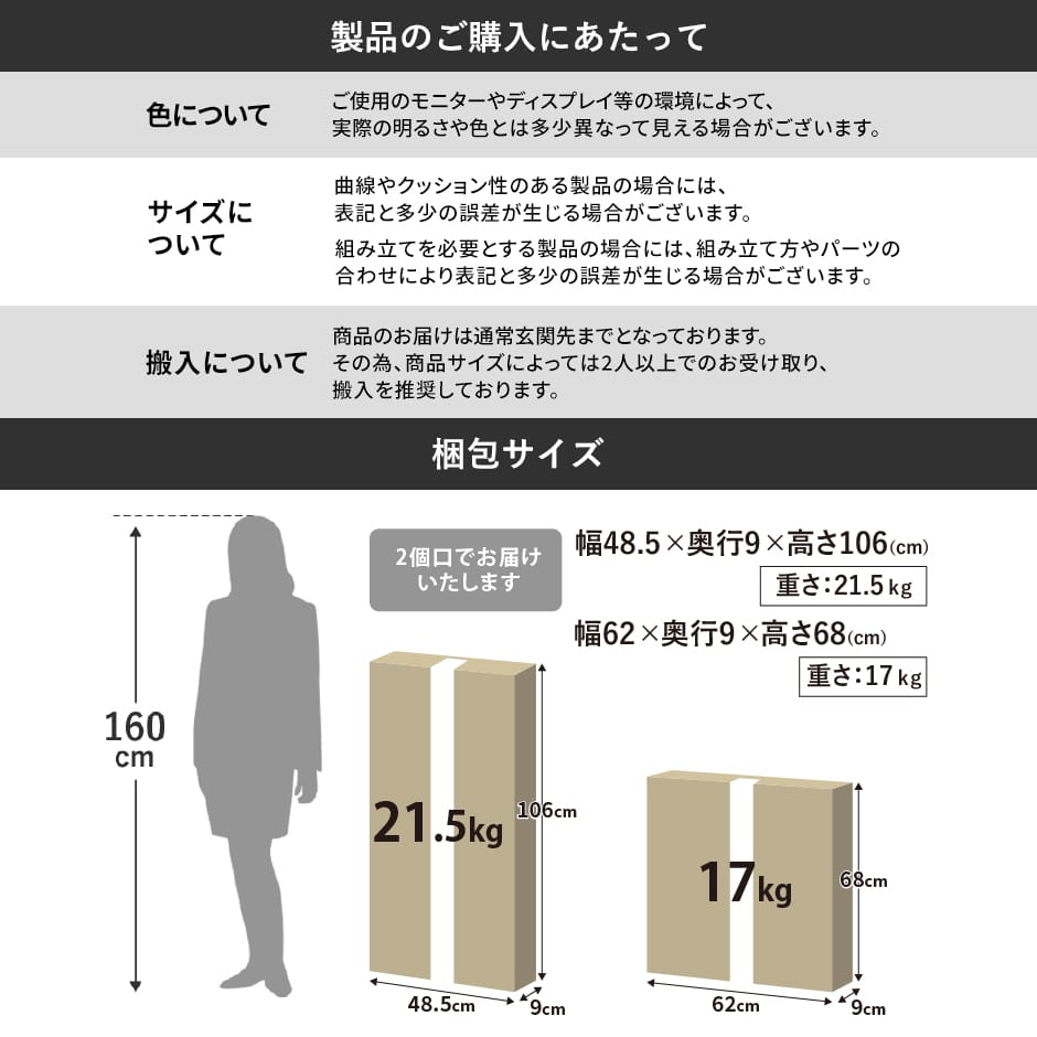 【梱包1】:幅106×奥行48.5×高さ9(cm)/約22kg