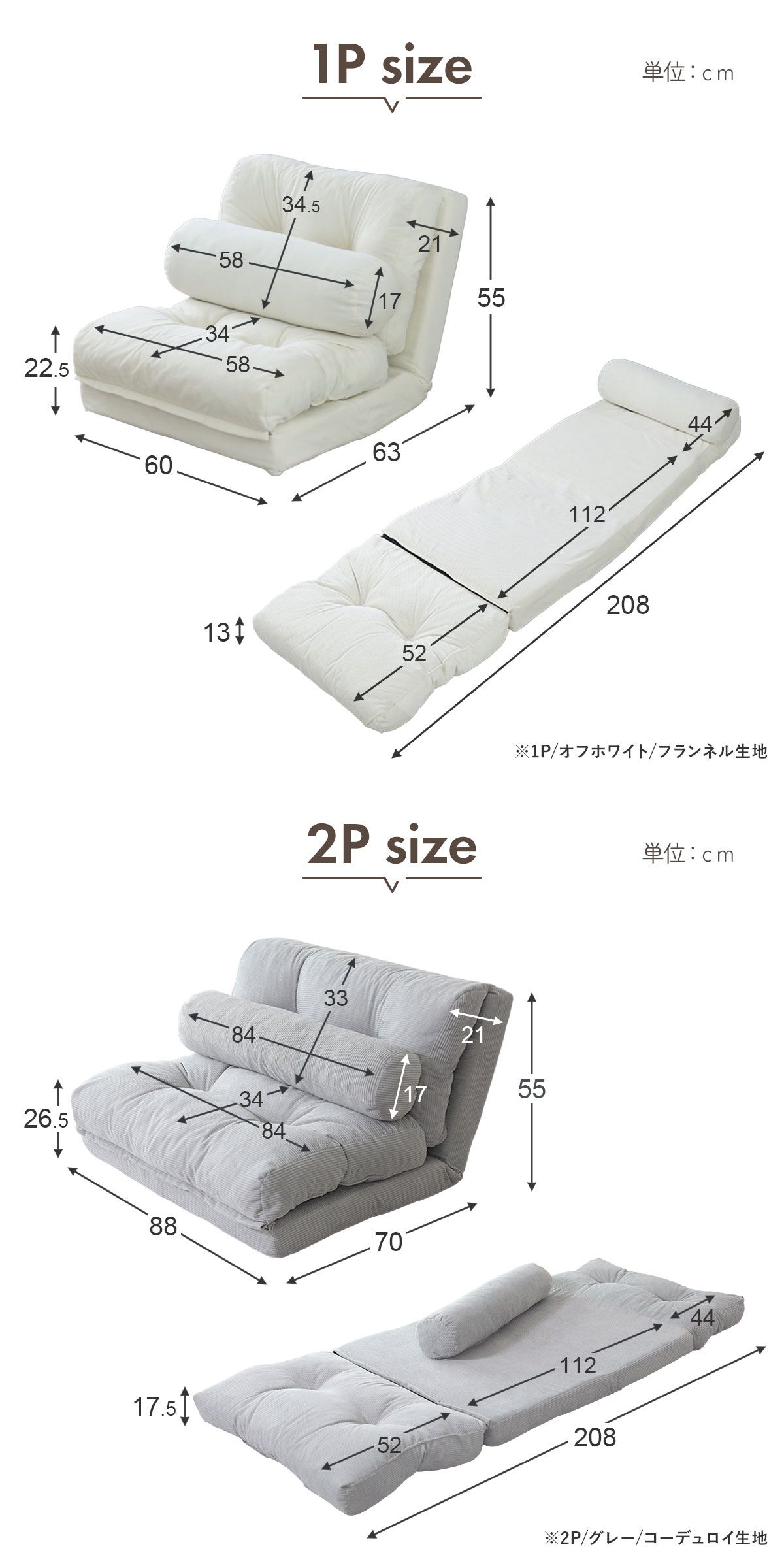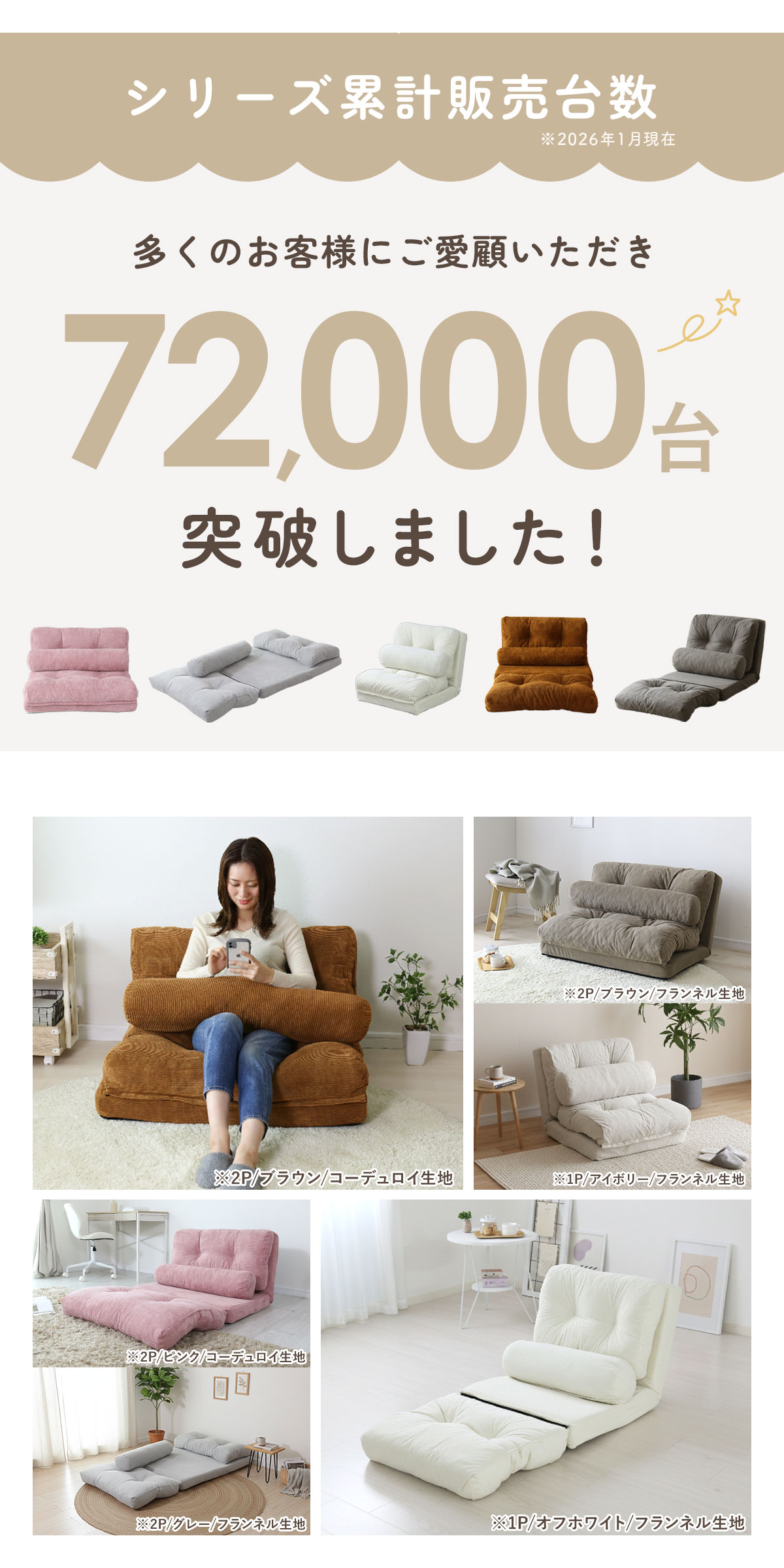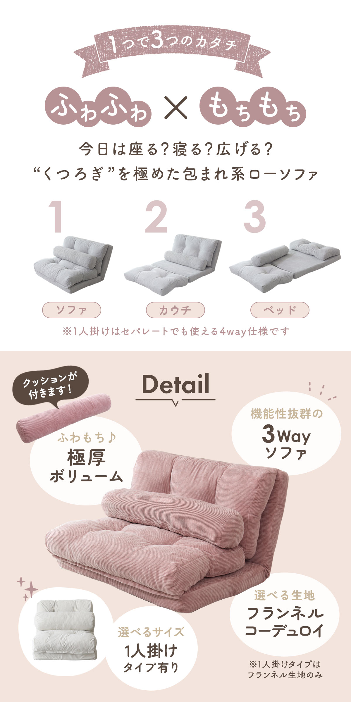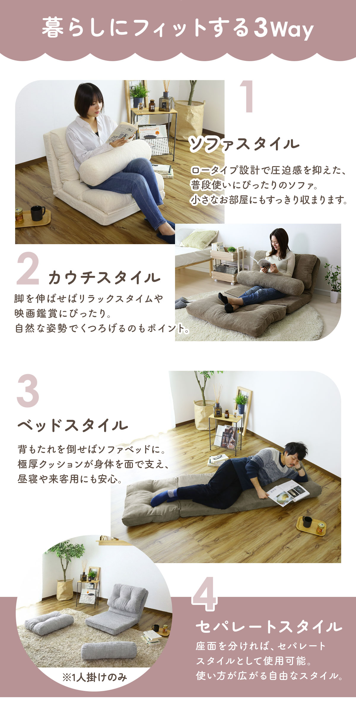 ※1人掛けはセパレートでも使える4way仕様です