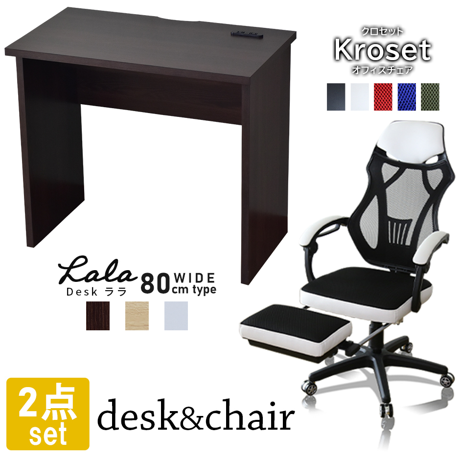 デスク パソコンデスク 学習机 PCデスク オフィスチェア メッシュ リクライニングチェア 肘付き 上下昇降 在宅勤務 テレワーク ララ80cm クロセット