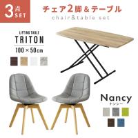 ダイニングセット チェア 椅子 デザイナーズ 北欧 ダイニングテーブル ローテーブル 高さ調節 昇降式 昇降テーブル ナンシー2脚 トリトン100×50