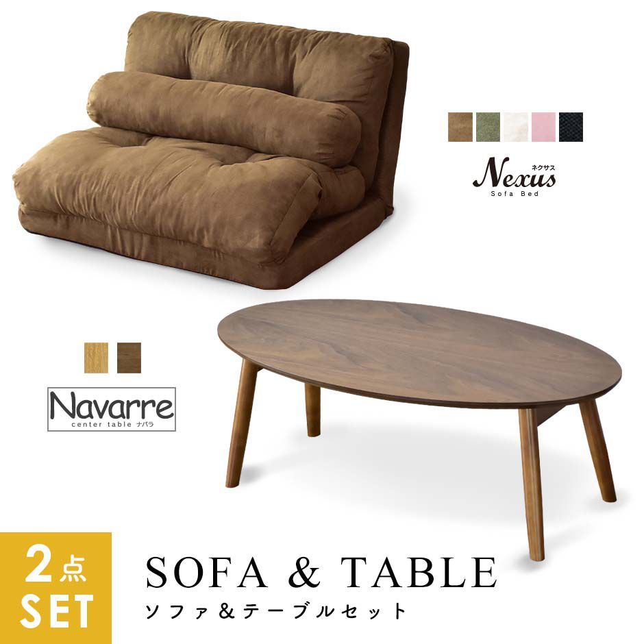 ソファベッド センターテーブル セット ソファ ベッド ローソファ リクライニング 折りたたみ 2人掛け 楕円形 木製 棚付き 折り畳み ネクサス2P ナバラ
