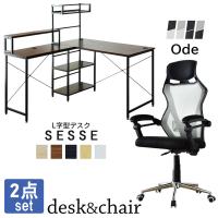 デスク チェア セット pcデスク L字型 コーナーデスク ラック付き 木製 勉強机 学習机 オフィスチェア メッシュ 肘付 リクライニングチェア セス オード