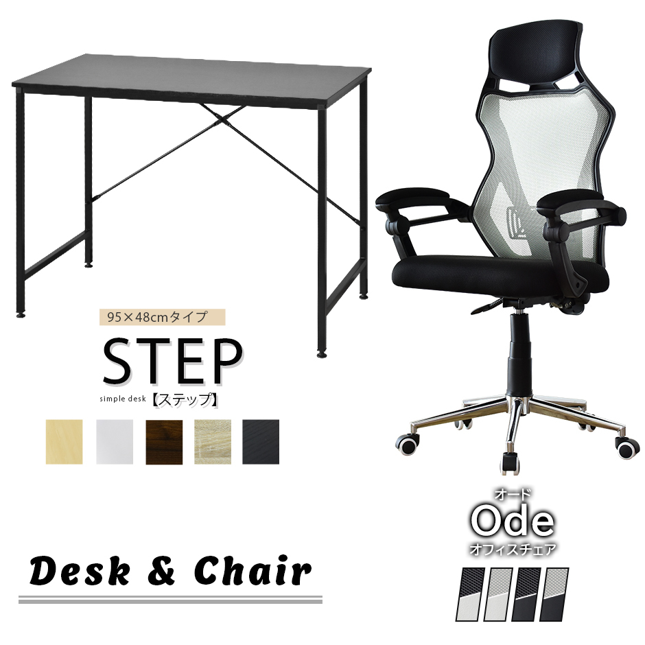 パソコンデスク オフィスチェア セット デスク チェア 在宅 テレワーク 木製 PC メッシュ リクライニング 肘付き ハイバック 低反発 ステップ95 オード4色
