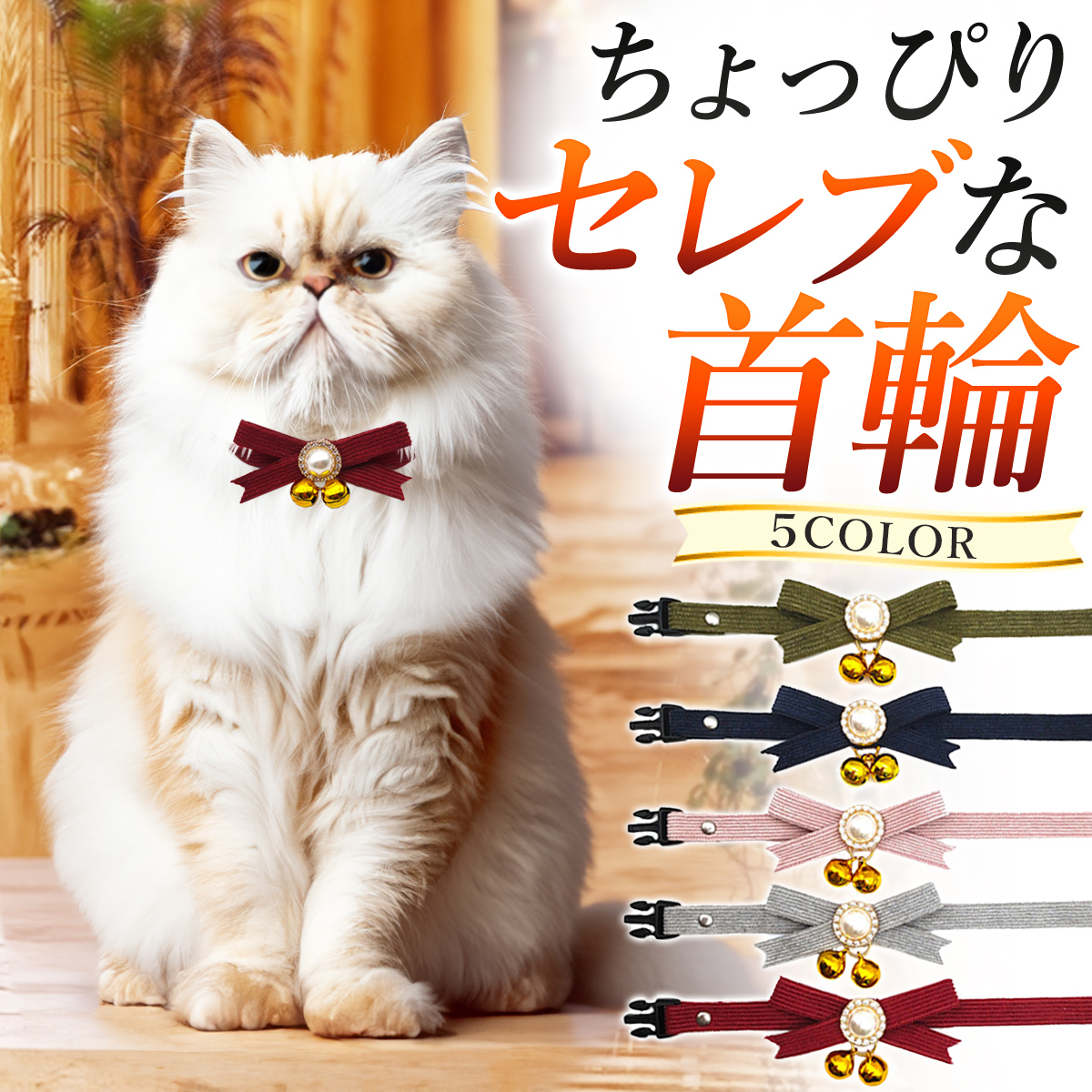 猫 首輪 安全 軽い おしゃれ 安全バックル シンプル リボン ネコ 赤 キラキラ 鈴 鈴付き 緑