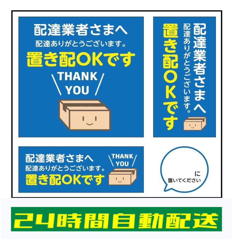 置き配 ステッカー シール 「置き配OKです」 不在案内 再配達防止 3タイプ 光沢 防水 耐候 シンプル 青 ブルー si10