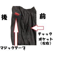 左右にポケットを2個(チャック付。右後ろにポケット1個。マジックテープ付)