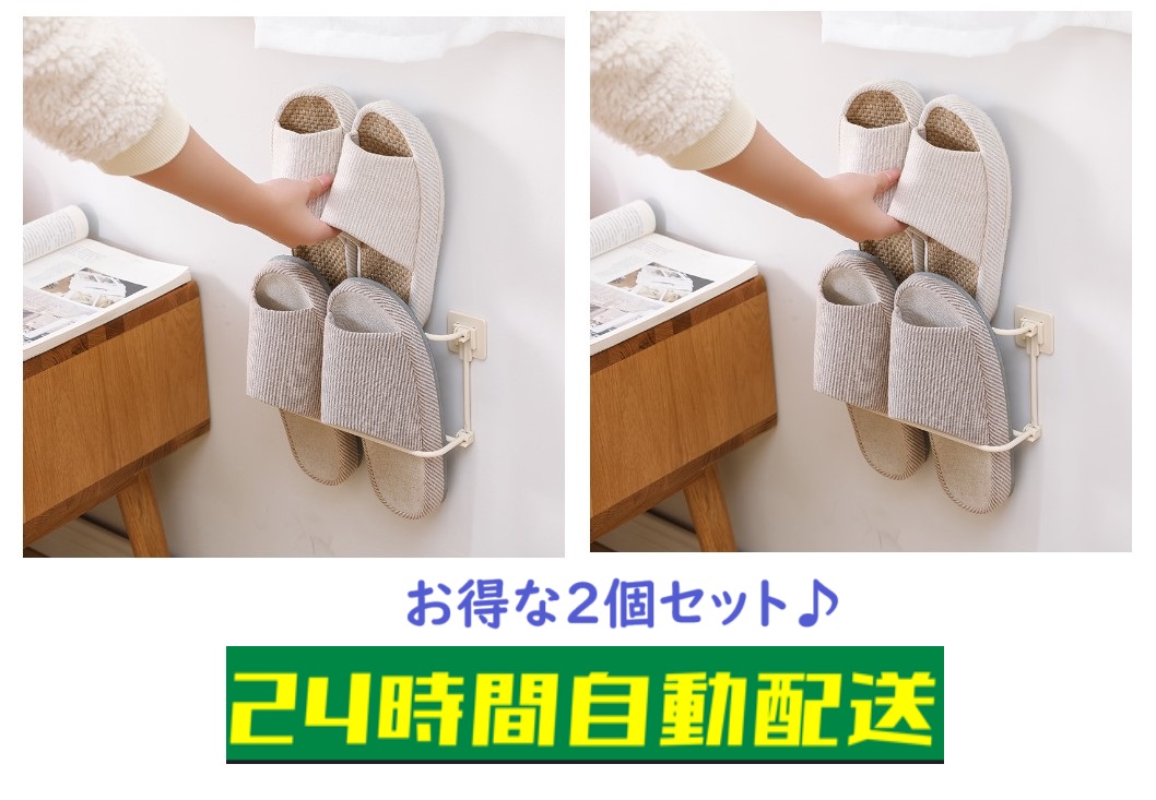 スリッパラック 壁掛け 2足用2個セット スリム スリッパ掛け 収納 穴あけ不要 サンダル掛け バスルーム 室内 玄関 浴室タオル 2足用2個セット sk02-2k