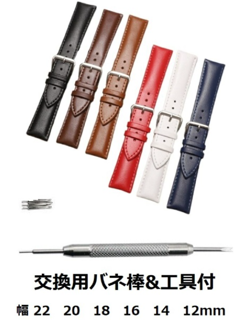 腕時計 ベルト バンド 交換 革 革製ベルト 12mm 14mm 16mm 18mm 20mm 22mm 工具 バネ棒