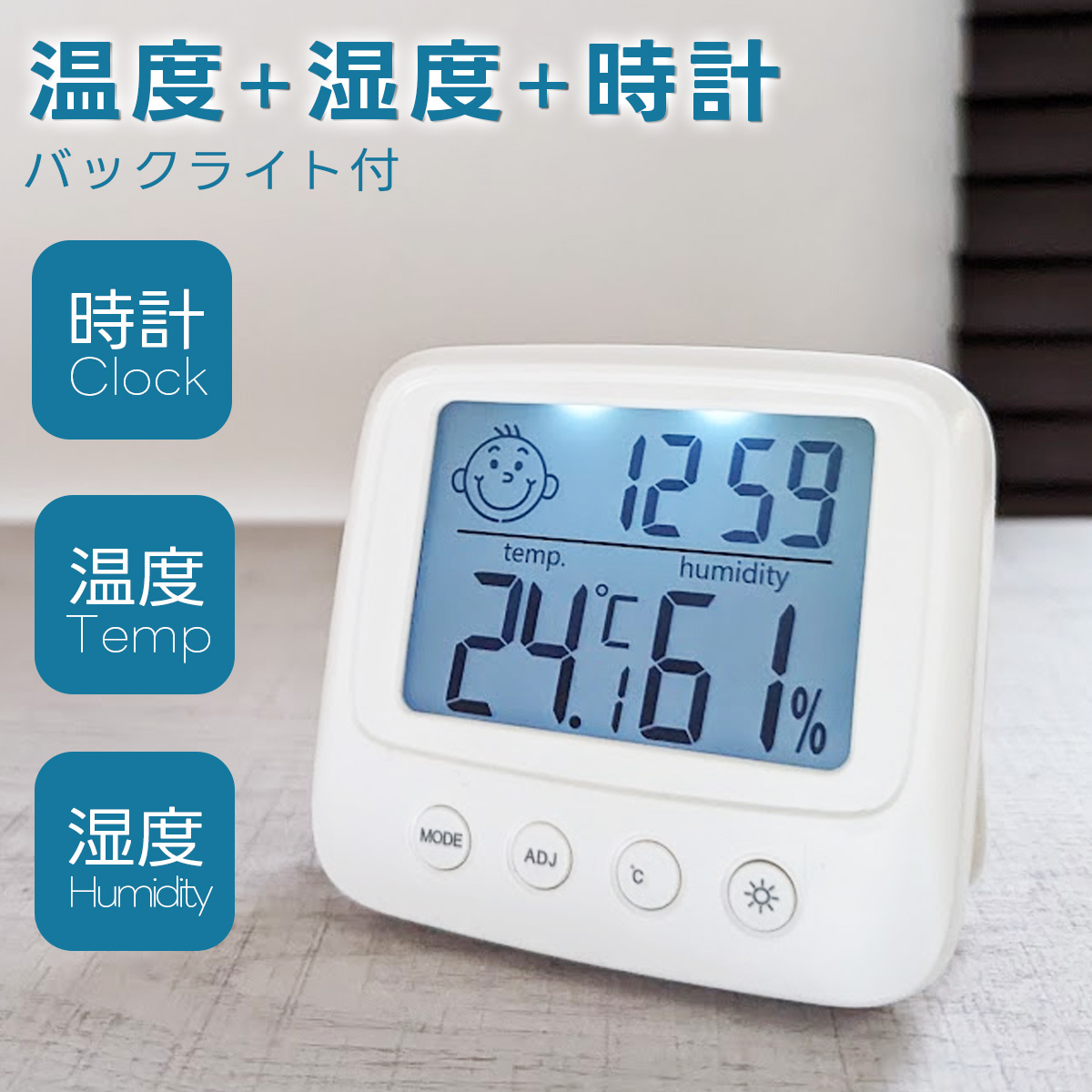 温湿度計 デジタル バックライト 温度計 湿度計 アラーム カレンダー 壁掛け 卓上 時計 スタンド 子供