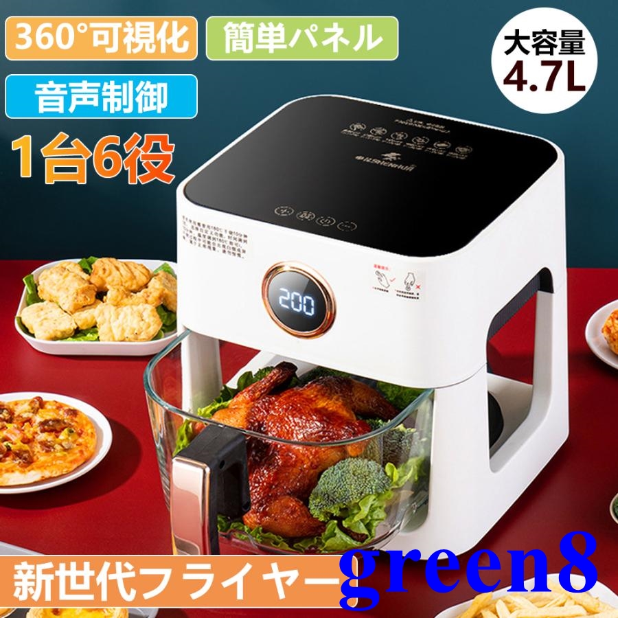 ノンフライヤー 4.7L 大容量 エアフライヤー 1台6役 電気フライヤー 唐揚げ 家庭用 1-6人用 コンパクト タッチパネル 油なし 過熱保護 レシピ本 PSE認証済み