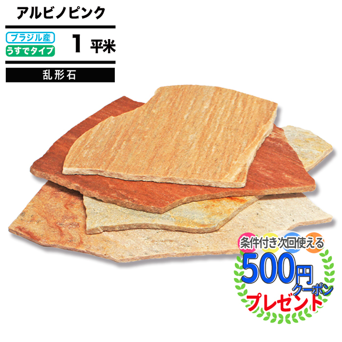 アルビノピンク 乱形石 NITTOSEKKO 約1平米 厚み約7〜13mm(薄手) 乱形 施工 舗装 アプローチ 庭 花壇 乱系 乱系石 【P変5/PR5】