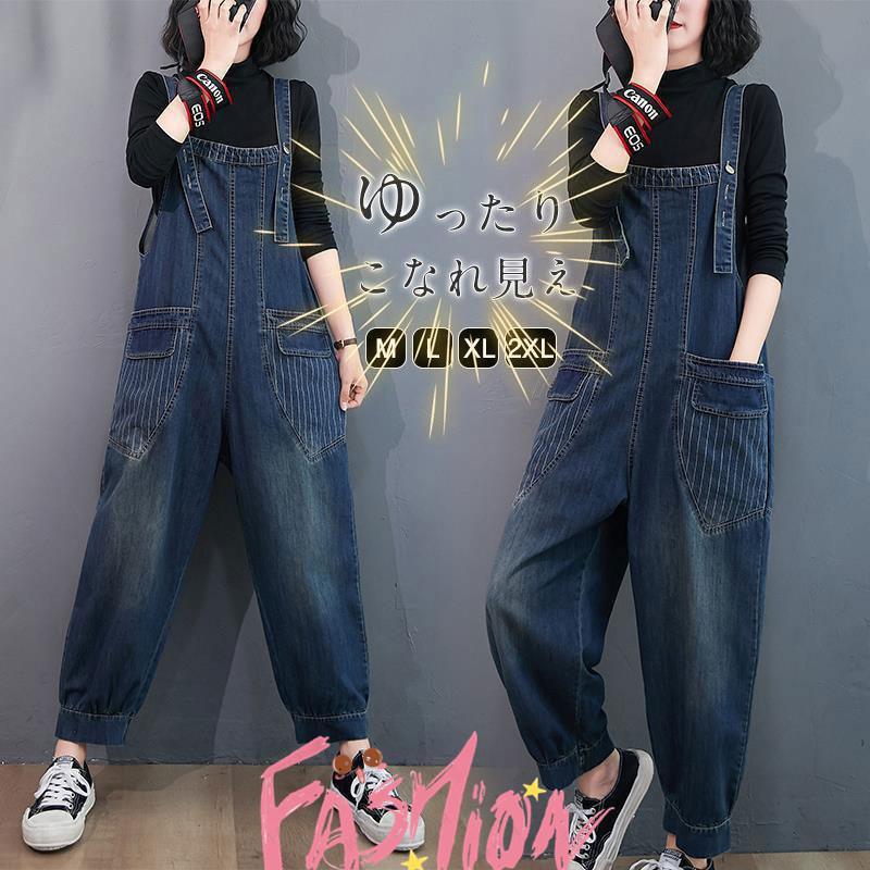 オーバーオール サロペットデニムパンツ 春秋 レディース 9分丈 ロングパンツ ズボン デニム パンツ 体型カバー 大きいサイズ