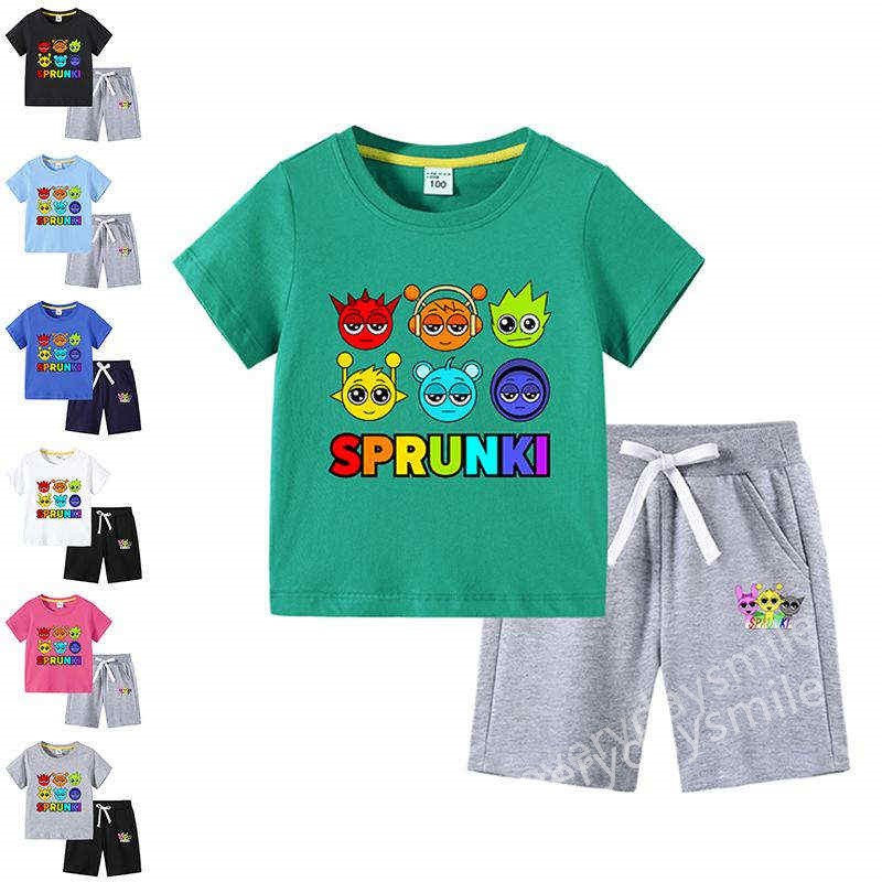 スプランキー sprunki 子供 キッズ 子ども 男の子女の子 半袖シャツ 子ども服 ジャージトップス 上下セット ジャージ 短パン 半ズボン 綿 ルームウェア Tシャツ