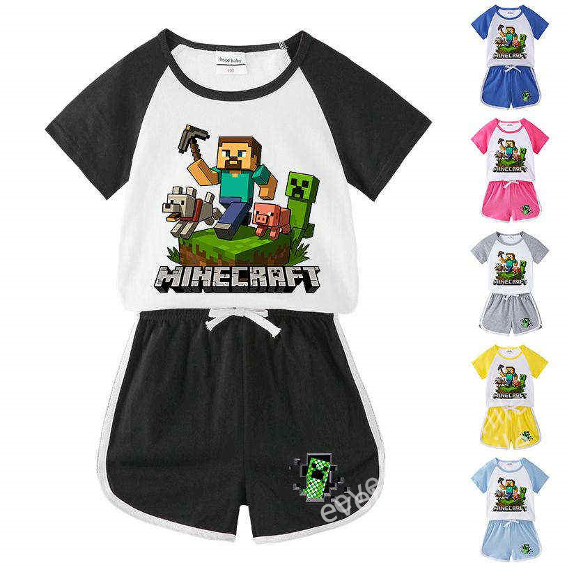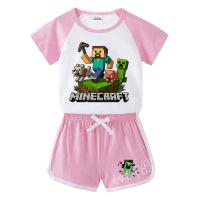 Minecraft マインクラフト 男の子 女の子 Tシャツ キッズ 100%綿 半ズボン キッズ 上下2点セット 子ども服 小学生 カットソー ギフト ゆったり ルームウェア