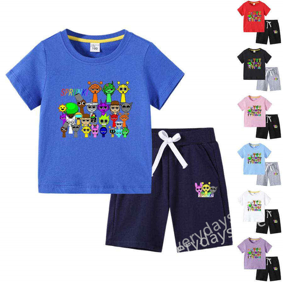 スプランキー sprunki 子供 キッズ 子ども 男の子女の子 半袖シャツ 子ども服 ジャージトップス 上下セット ジャージ 短パン 半ズボン 綿 ルームウェア Tシャツ