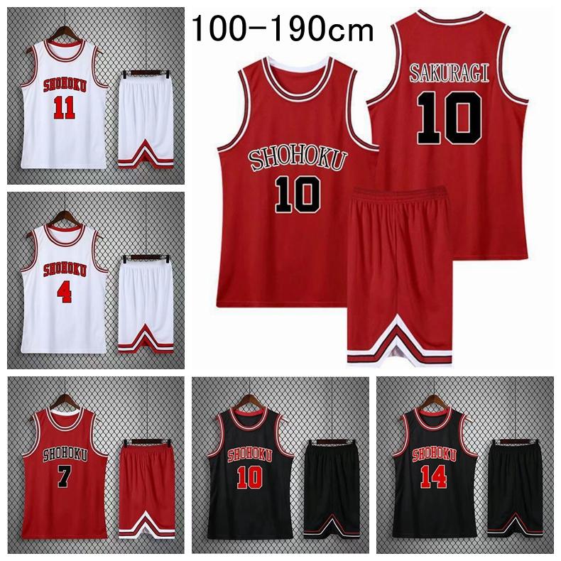 スラムダンク ユニフォーム赤色 背番号10湘北 桜木 背番号14三井 背番号7宮城 背番号11 流川背番号4赤木スポーツ バスケットボールジャージセット