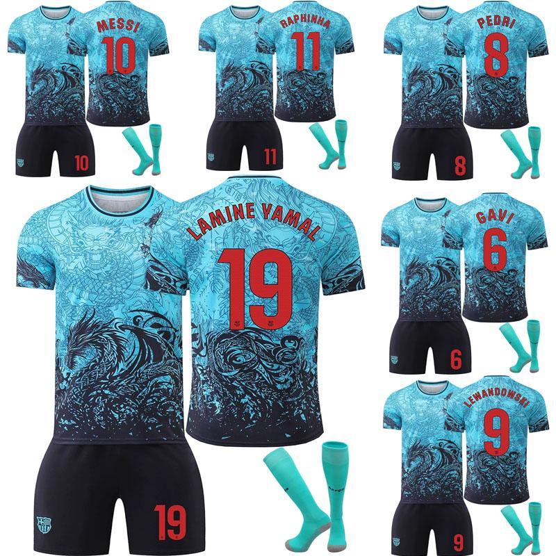 2526 バルサ特別版 背番号9 レヴァンドフスキ 8 ペドリ 6 ガヴィ 10 メッシ 19 ヤマル サッカーユニフォーム 大人用&キッズ