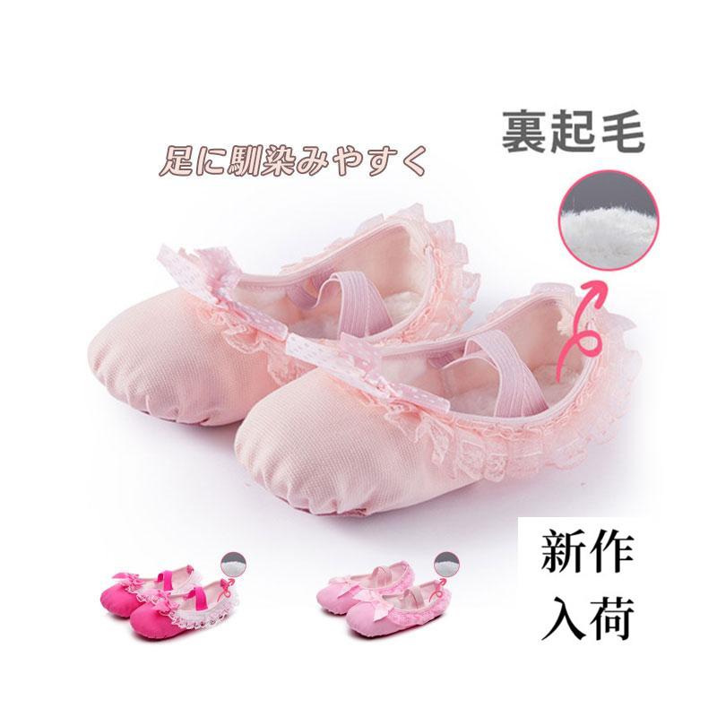 バレエシューズ キッズ 裏起毛 シューズ 子供 レース バレエ用品 靴 布製美脚 女の子 ダンス 踊るエレクトーン バレエ キッズ 新体操