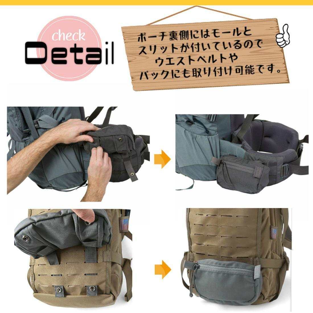 | エクスペディションシリーズの大型パックに最適なウエストベルトポケット。 スリットとMOLLEで様々なベルトに対応。 | ||