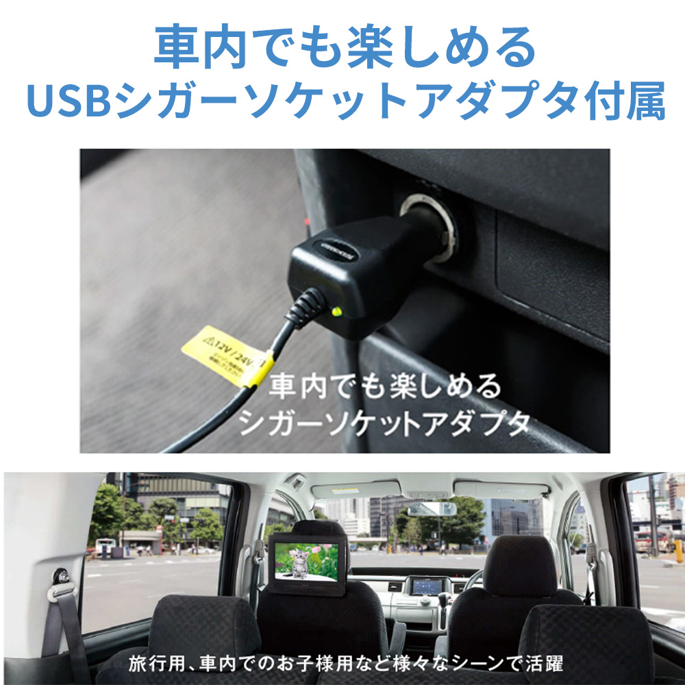 ●車内でも楽しめるUSBシガーソケットアダプタ付属(12/24V車専用)