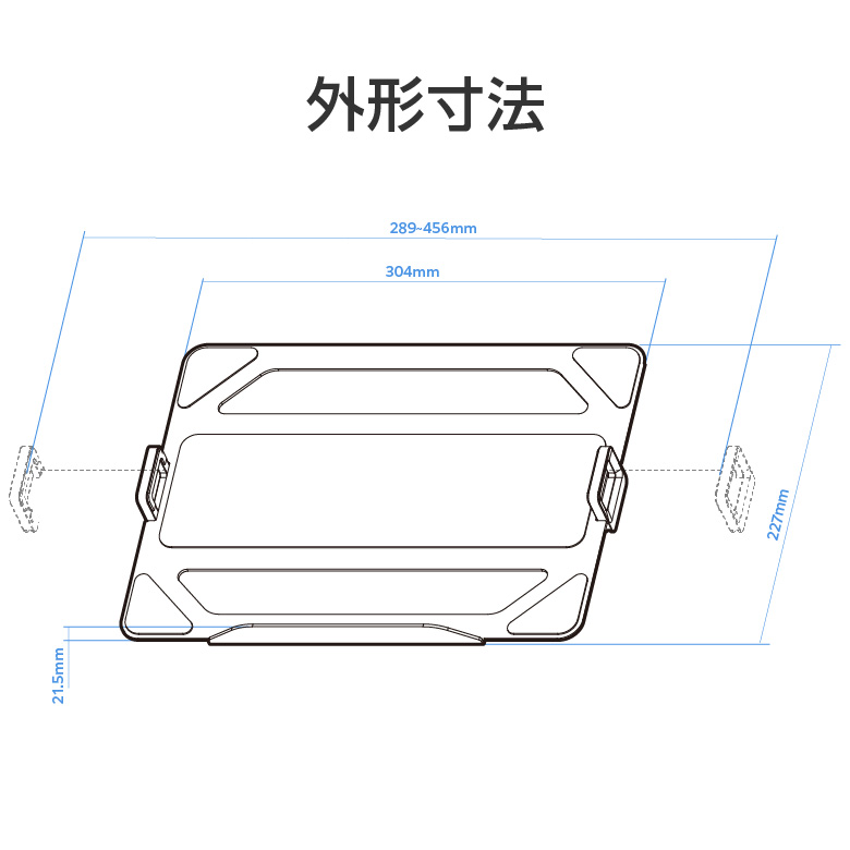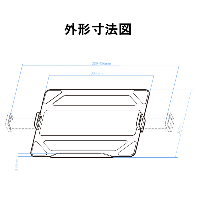 左右の固定ツメでノートPCをしっかり固定。横幅289〜456mmのノートPCに対応します。