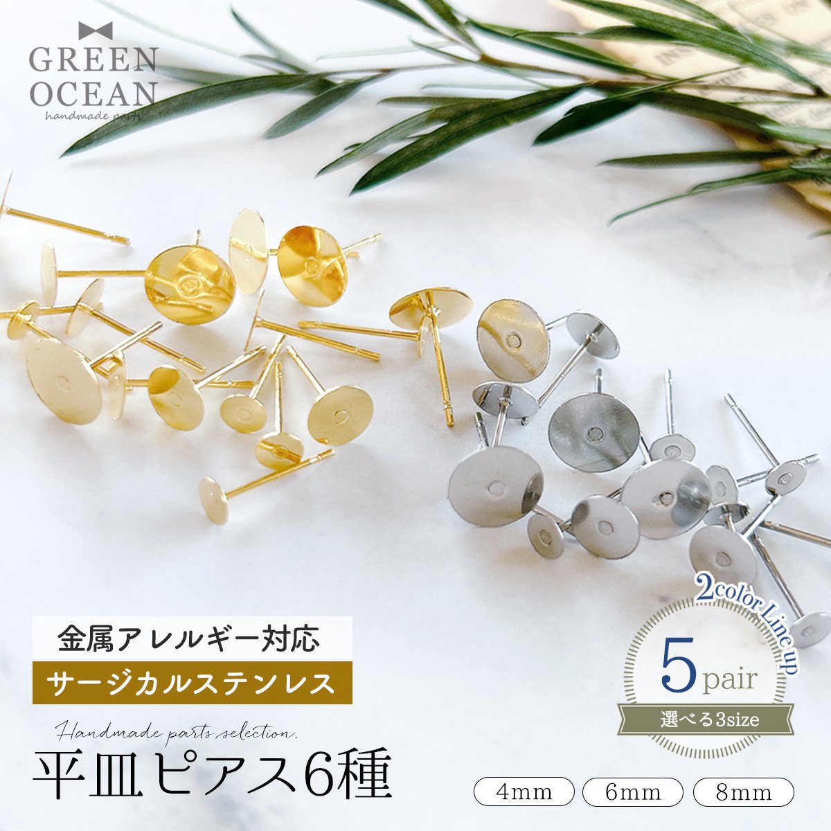 ゴールドとステンレスシルバーの2色のラインナップ!同色同サイズの5ペア10個セットです♪丸皿の大きさは4mm、6mm、8mmをご用意しました。