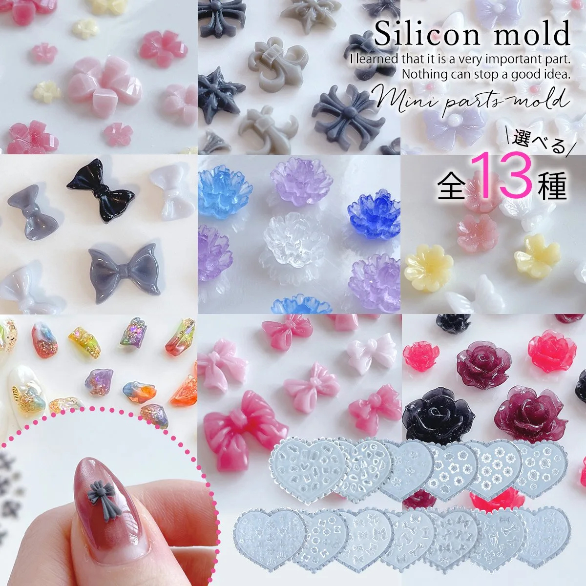 シリコン型・モールド ネイルサイズのデコパーツが作れる シリコンモールド レジン型 ストーン 鉱石 宝石 蝶 花 フラワー リボン UVレジン クラフト 選べる13種