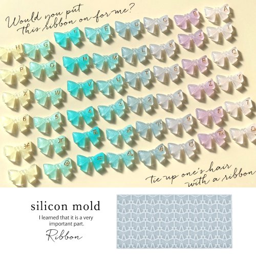 シリコン型・モールド リボンのシリコンモールド レジン型 ビーズ りぼん アルファベット 英語 イニシャル 数字 星座 パーツ 粘土型 UVレジン LEDレジン 手芸