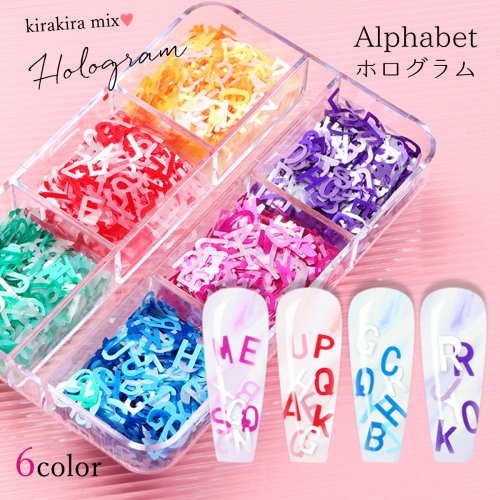 封入 アルファベット ホログラム 6色 MIX レジン封入 ネイルパーツ ネイル用品 英語 ローマ字 英字 推し活 イニシャル デコパーツ キラキラ 手芸 クラフト