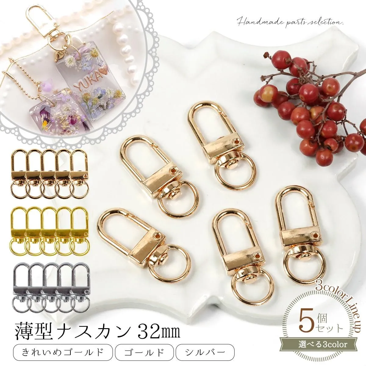 オリジナルのバッグチャームやキーホルダー制作にぴったり!上品なツヤ感とスタイリッシュなフォルムが魅力の、回転式シンプルなナスカン金具5個セット。作品をぐっと高見えさせてくれる人気パーツです。