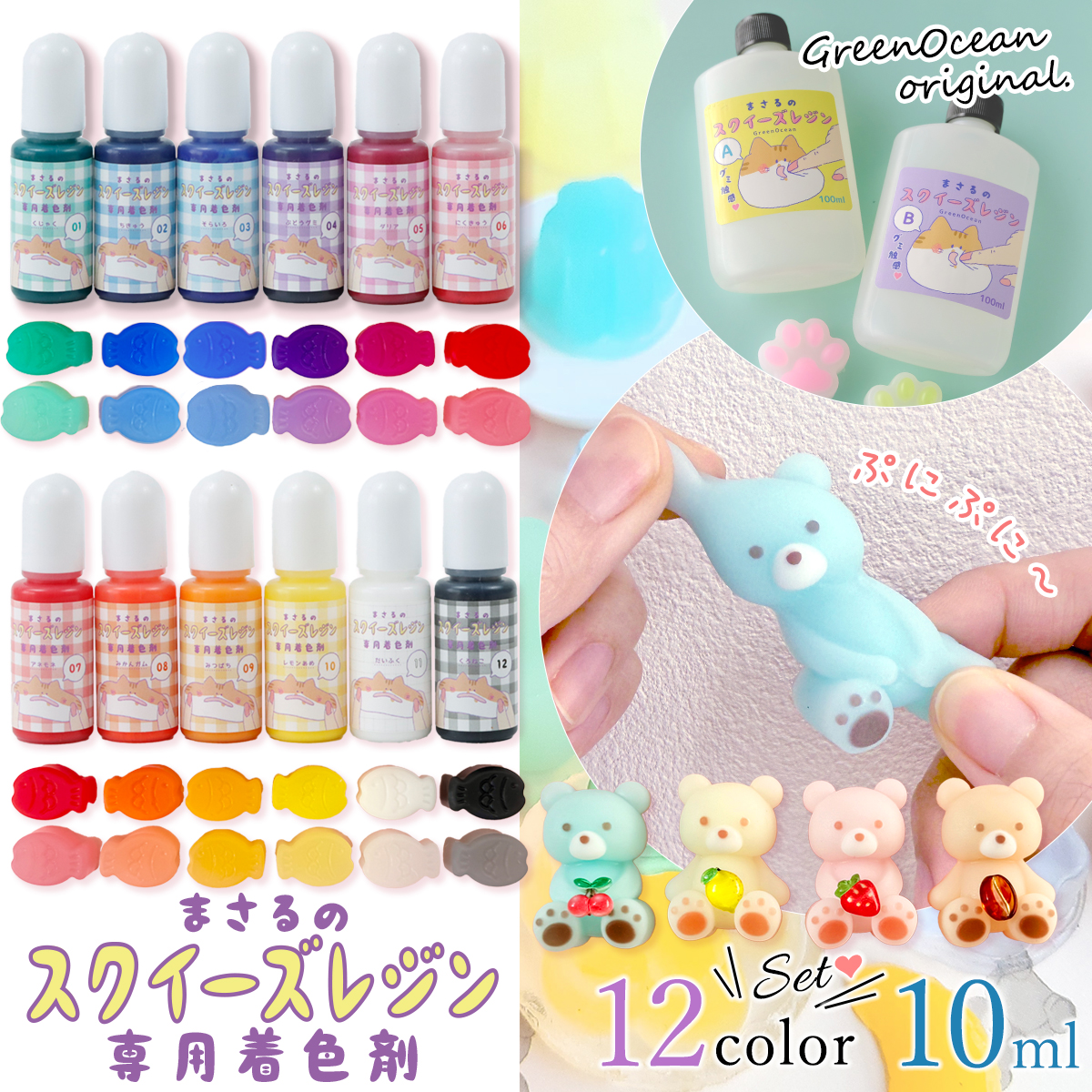 触って楽しい3つのぷにぷに触感♪まさるのスクイーズレジン専用の着色剤。