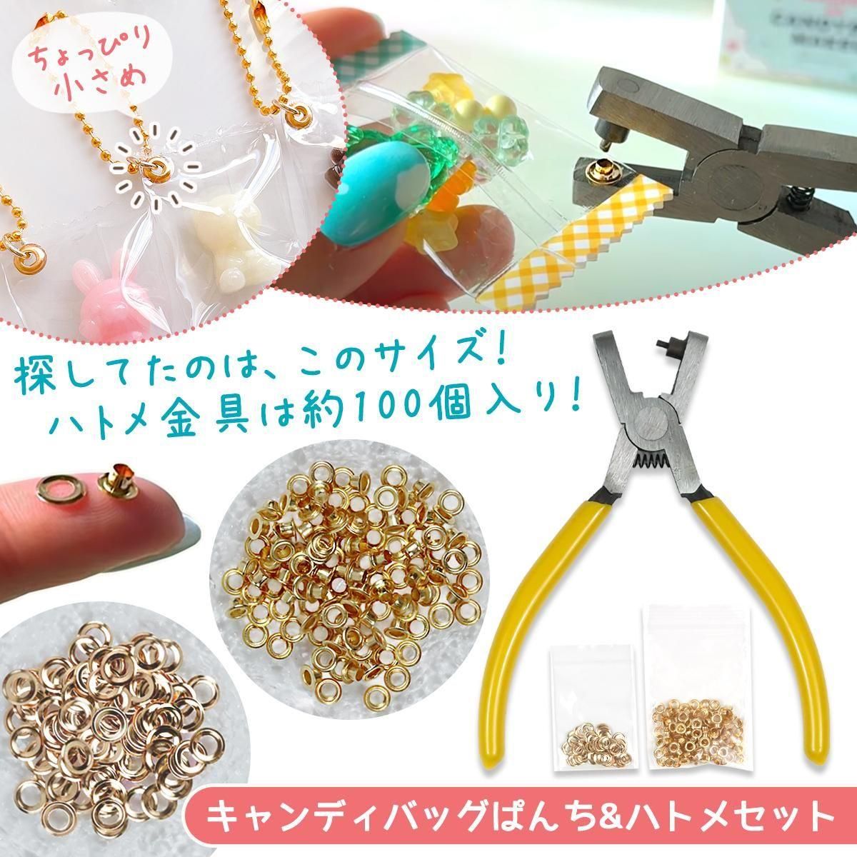 2026謎福袋に入っていた、キャンディバッグぱんちとハトメ金具約100個のセット。