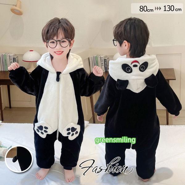 キッズパジャマ 耳付き 長袖 ルームウェア 着る毛布 オールインワン フード付き パンダ 子供服 キッズ フランネル パジャマ 男の子 女の子 部屋着 プールタオル もこもこ あったか ふわふわ 優しい肌触り厚手 保温 防寒 可愛い 暖か 秋冬 dh014m3m3m3
