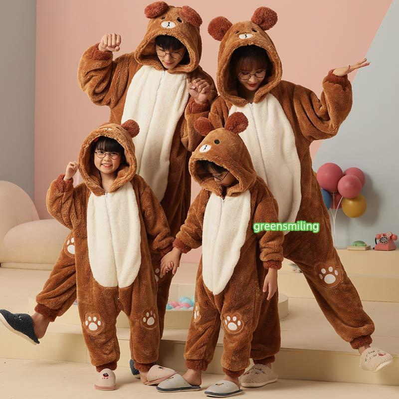 キッズパジャマ レディースパジャマ 子供パジャマ メンズパジャマ クマ 男の子 女の子 長袖 部屋着 ルームウェア オールインワン ガウン ブラウン ナイトウェア ロング丈 フード付きもこもこ あったか フランネル 冬物 仮装 コスプレ変装 dh230c0c0m3