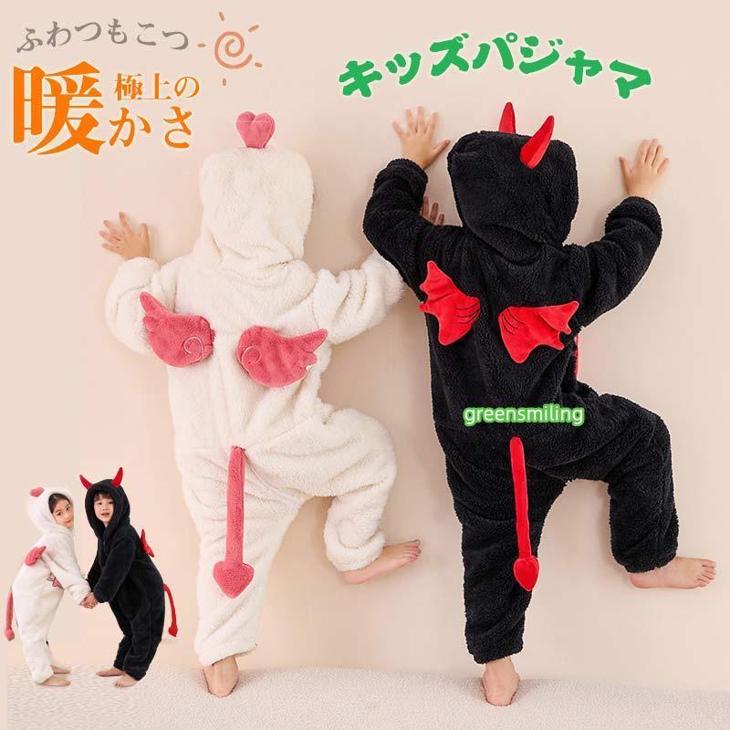 着る毛布パジャマ キッズ 着ぐるみ パジャマ 羽付き 子供用 フード付き 耳付き 長袖キッズパジャマ 男の子 女の子 ベビー オールインワン ルームウェア キッズ 可愛い 小悪魔 85-145cm dh234c0c0m3