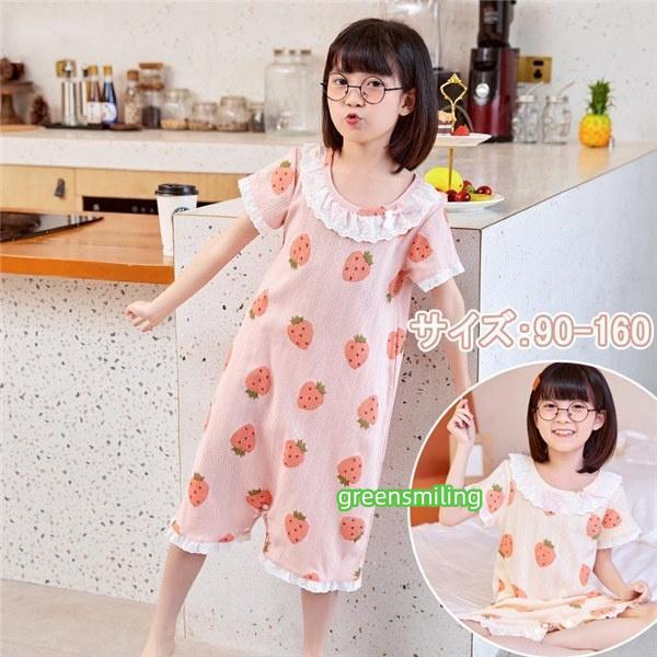 キッズパジャマ ルームウェア キッズ イチゴ柄 子供 女の子 フリル レース 夏 かわいい おしゃれ 半袖 可愛い 部屋着