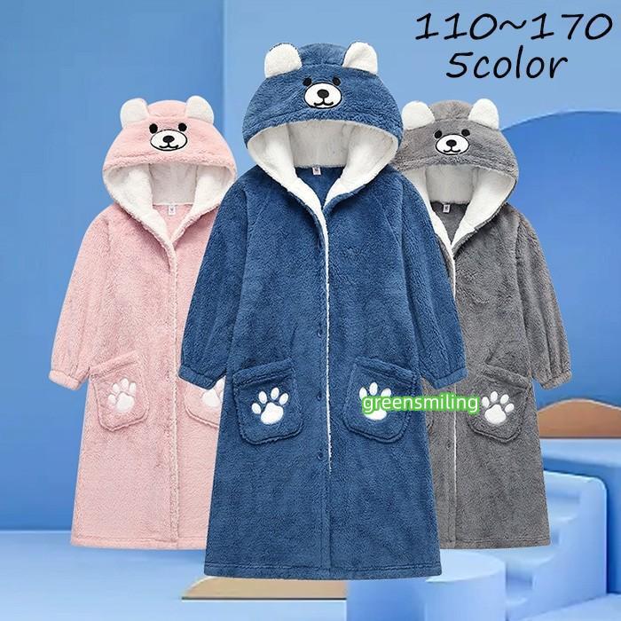ルームウェア バスローブ キッズ パジャマ ガウン 寝巻き 着る毛布 部屋着 冬 男の子 女の子 子供パジャマ ロング ガウン ナイトウェア 前開き 長袖 もこもこ あったか ふわふわ コーラルフリース かわいい
