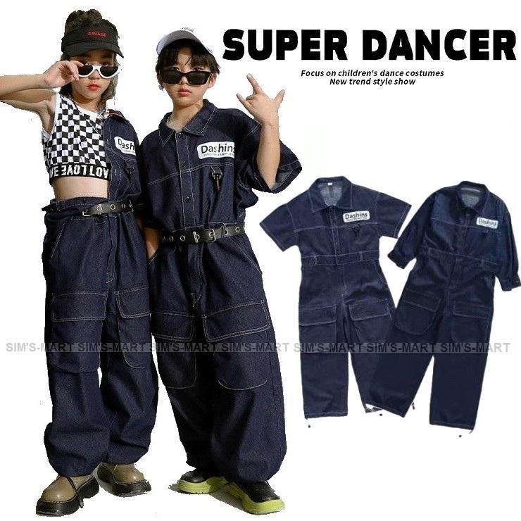 つなぎ キッズ ヒップホップ デニム キッズダンス衣装 作業服 オーバーオール 子供ダンス服 ダンスウェア 男の子 ガールズ K-POP 韓国 派手