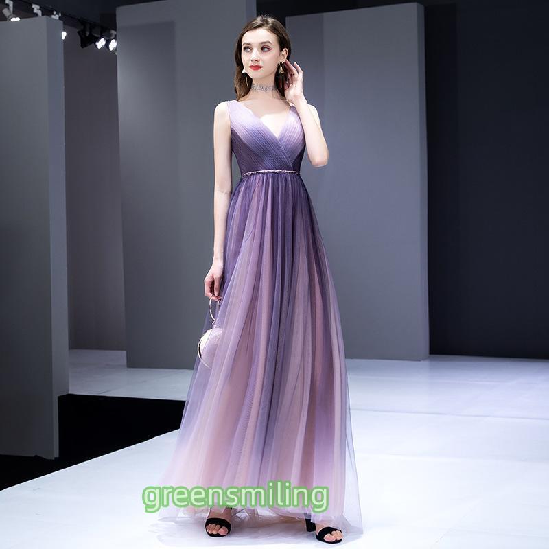 カラードレス カクテルドレス ロング丈 パーティードレス バイオリン発表会 演奏会 ステー コンクール イブニングドレス フォマール パープル 袖なし