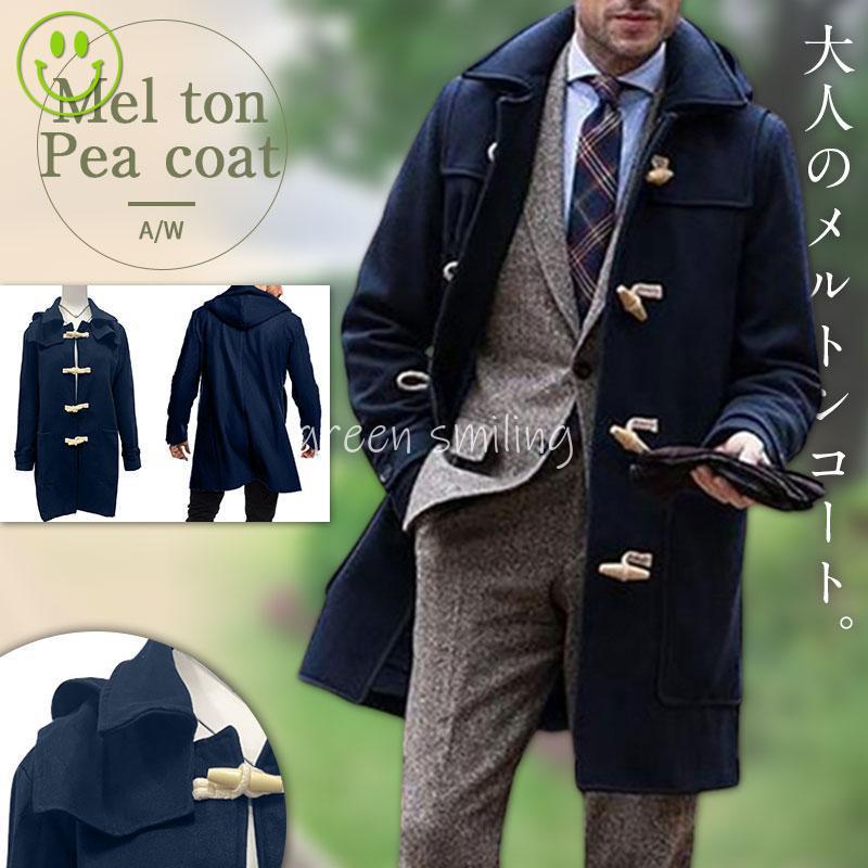メルトンコート メンズ ダッフルコート ロング ジャケット カジュアル 秋冬 アウター 上着 暖か クラシック 紳士服 トグル釦 防寒 上品 父の日