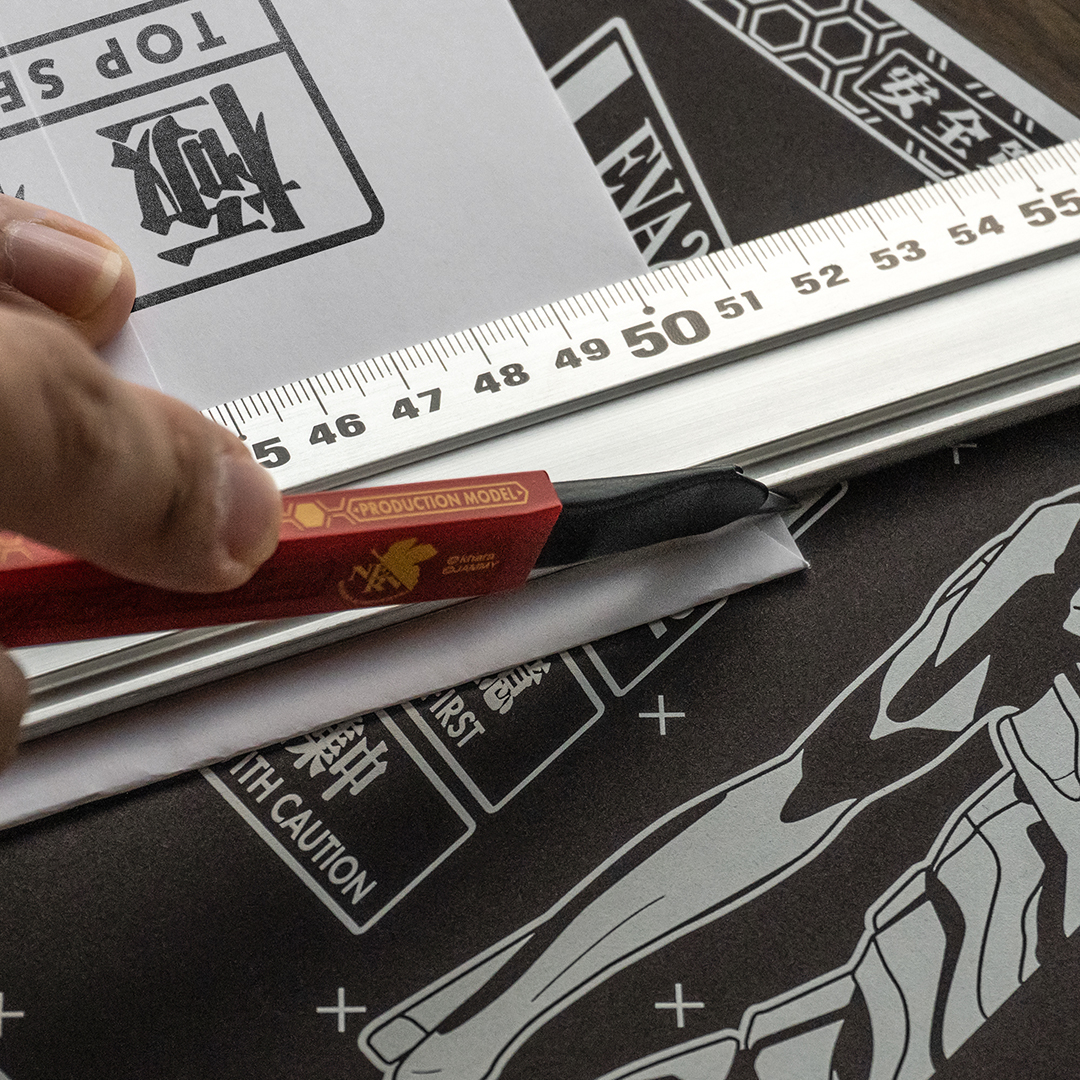 カッターマットの他にも、カッターもエヴァンゲリオン「初号機」と「2号機」の2種類をラインナップ。