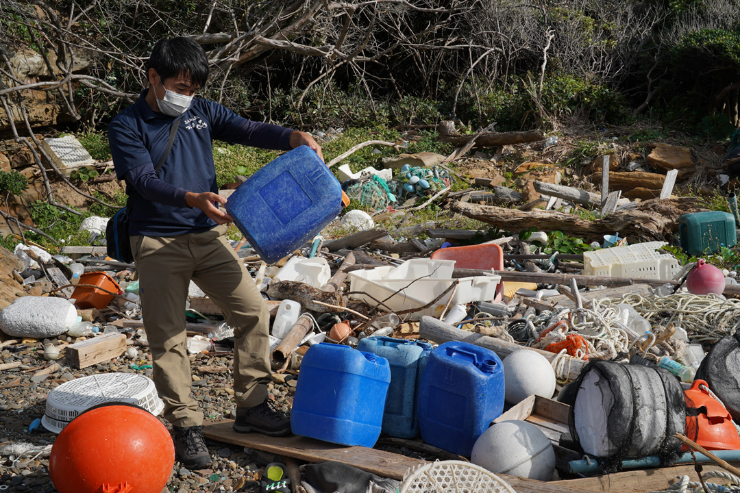 「海ごみの防波堤」とも呼ばれるほど、多量のオーシャン・プラスチックが漂着する長崎県対馬市。