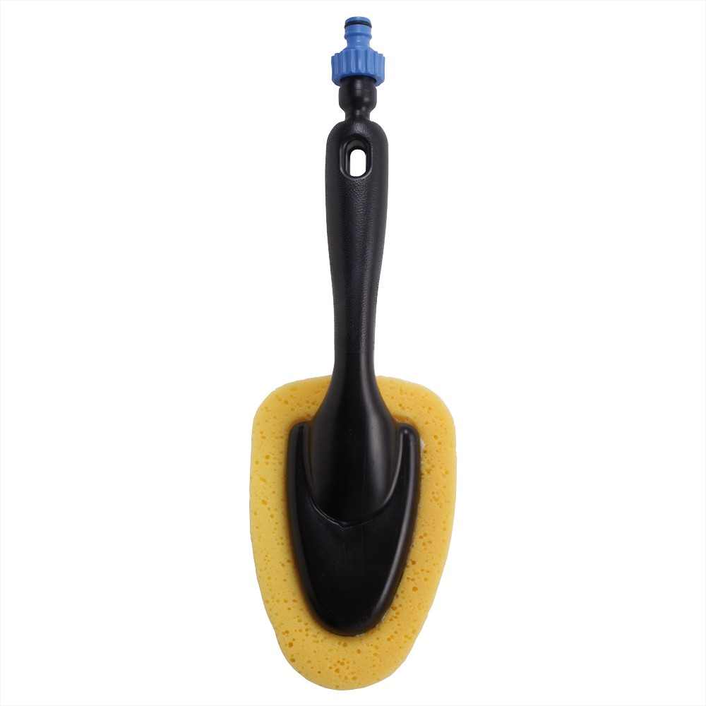 ●ホースの先端に散水コネクターがついたホース・ホースリールにつなげば、水をだしながら洗車ができるブラシです。
