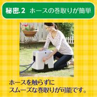 ●日差しからホースを守る着脱可能なカバー付きボックスタイプの散水ホースリール。