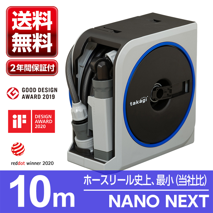 ホースリール ホース NANO NEXT 10m RM1110GY 園芸 ガーデン ガーデニング ベランダ 家庭菜園 散水 洗車 掃除 庭 おしゃれ タカギ takagi 2年間保証