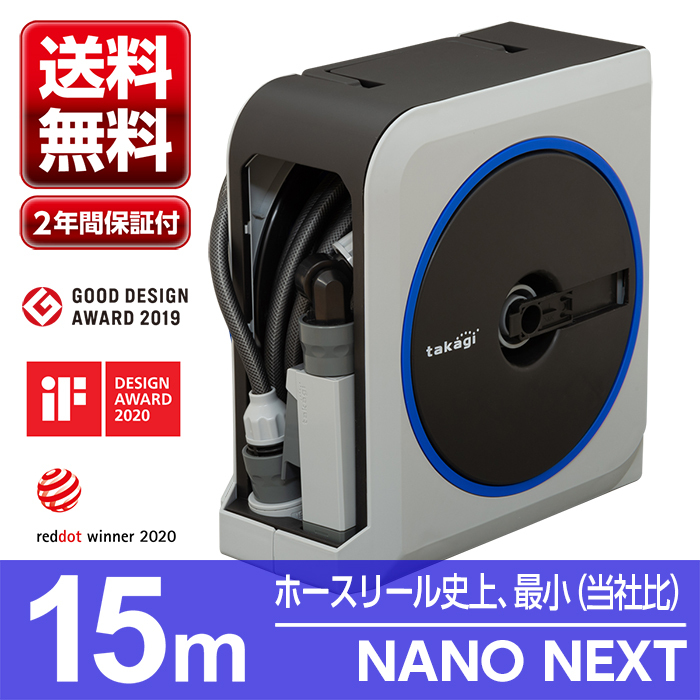 ホースリール ホース NANO NEXT 15m RM1215GY 園芸 ガーデン ガーデニング ベランダ 家庭菜園 散水 洗車 掃除 庭 おしゃれ タカギ takagi 2年間保証