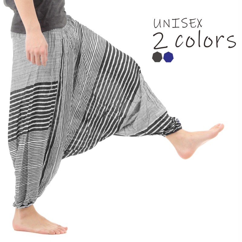 サルエルパンツ メンズ レディース アラジンパンツ レーヨン ボーダー柄 タイパンツ ユニセックス オールインワン G